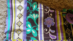 Here is the bag inside out to show you the other side of the pockets. It's a simple large pocket divided with a line of stitching. But I thought that wouldn't be good as-is because I would lose things like bobby pins in such a large pocket...